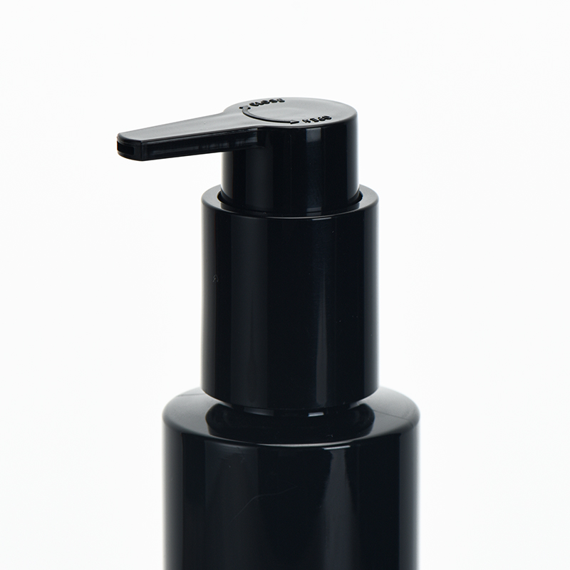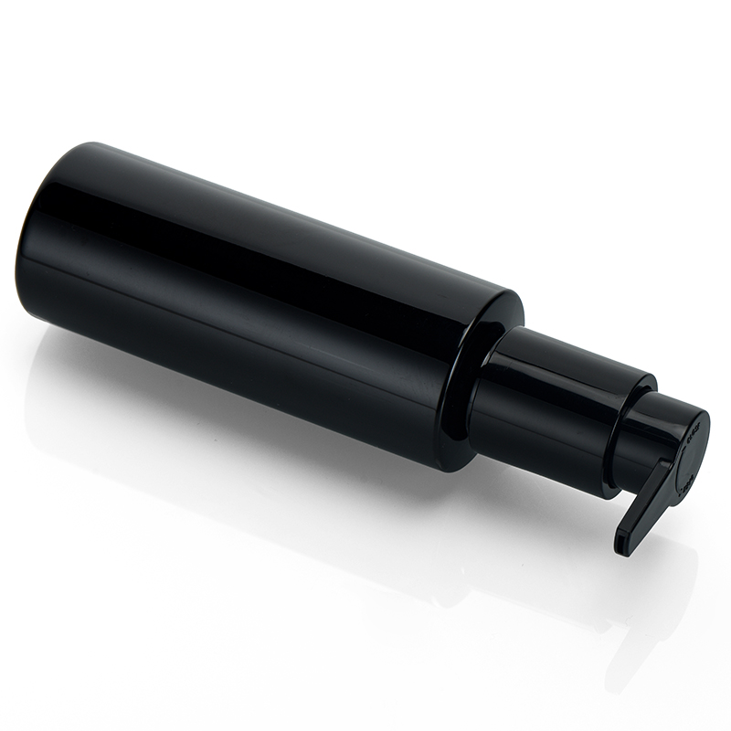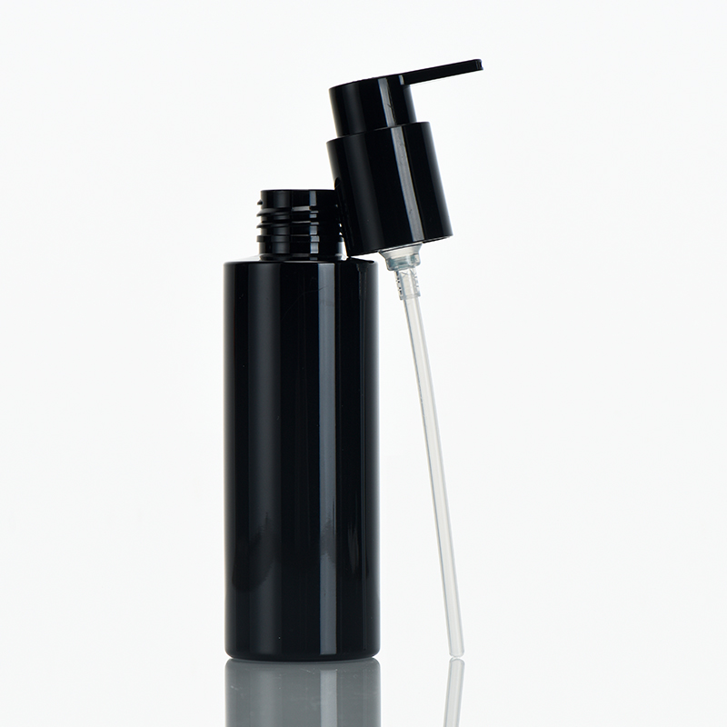 Cosmetic PET Round Bottle With Lotion Pump 120ml Black Color Custom Printing Used For Skin Care Products