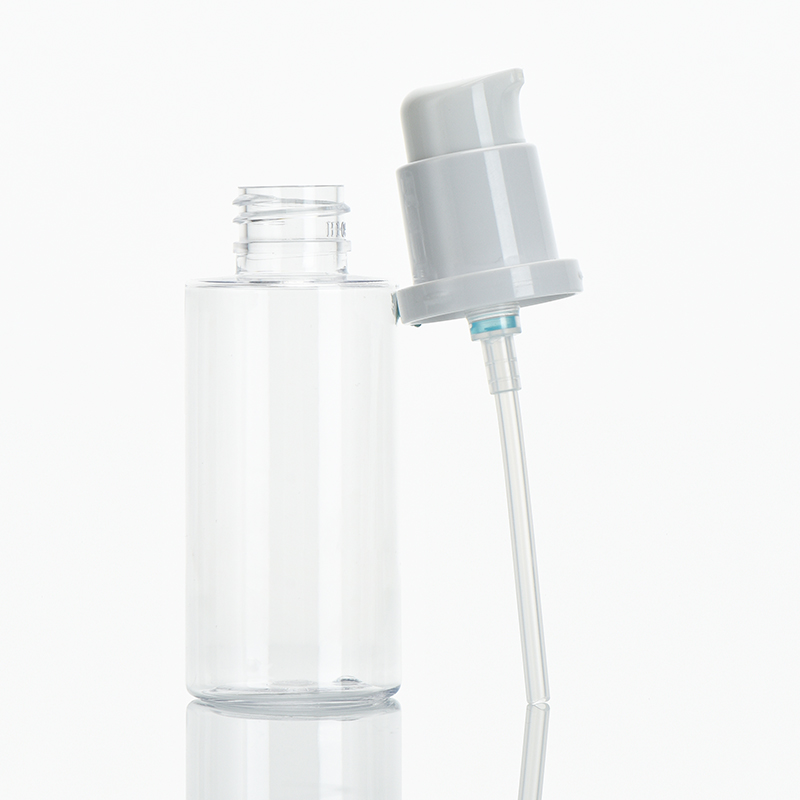 Cosmetic Plastic Round Shape PET Bottle 50ml With Pump & Overcap
