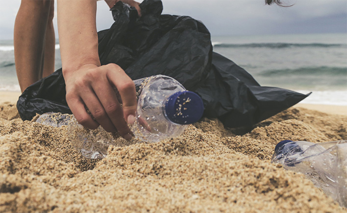 ①Discarded plastic bottles are picked up by plastic collectors from areas at risk of ocean plastic pollution.