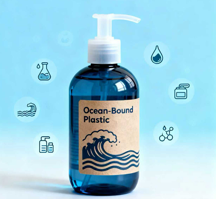 Beauty packaging made with Ocean-Bound Plastic